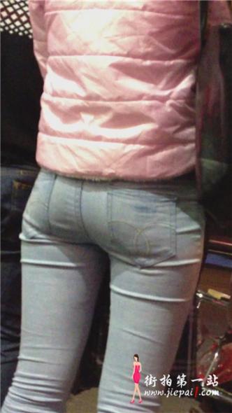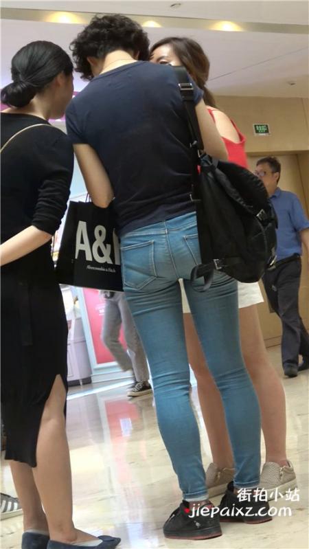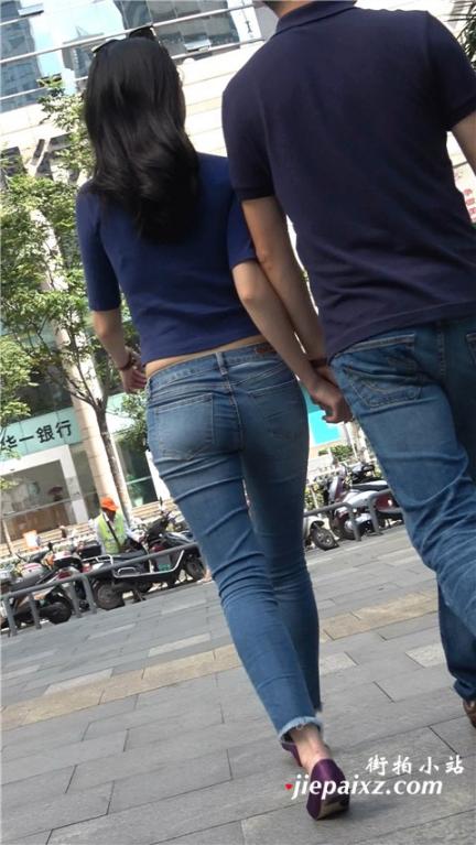 极品翘臀紧身蓝色牛仔裤街拍美女