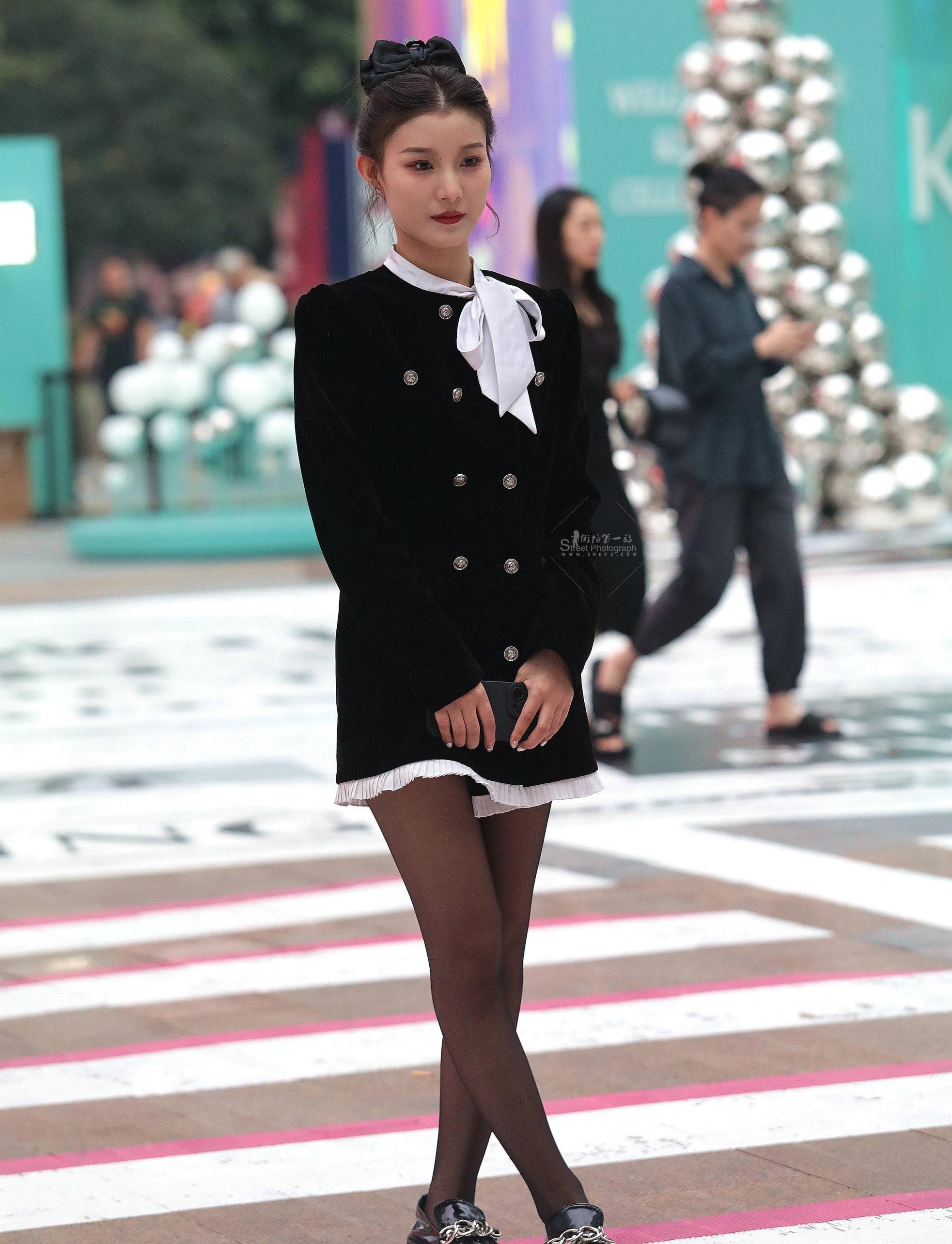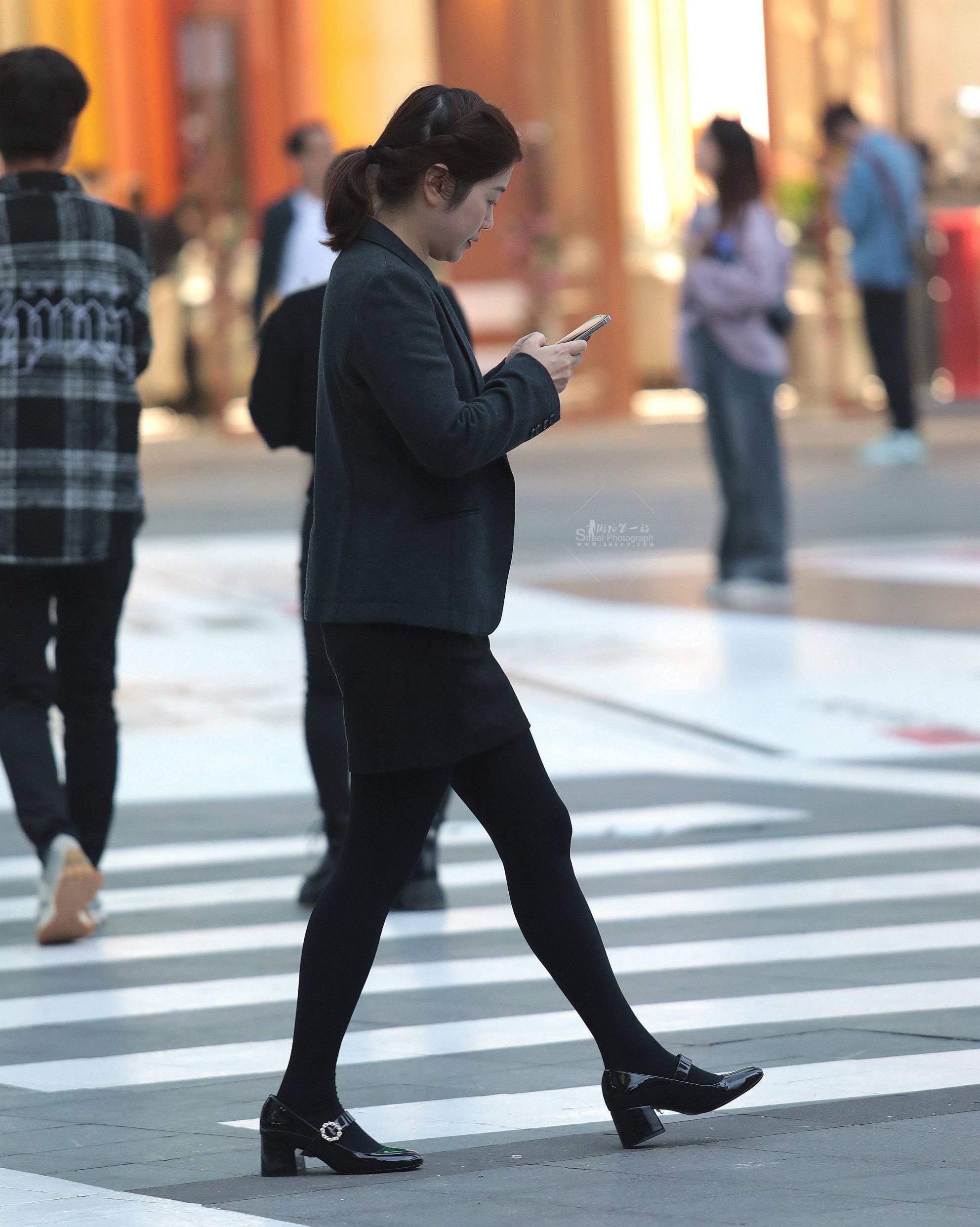 街拍黑丝职业装