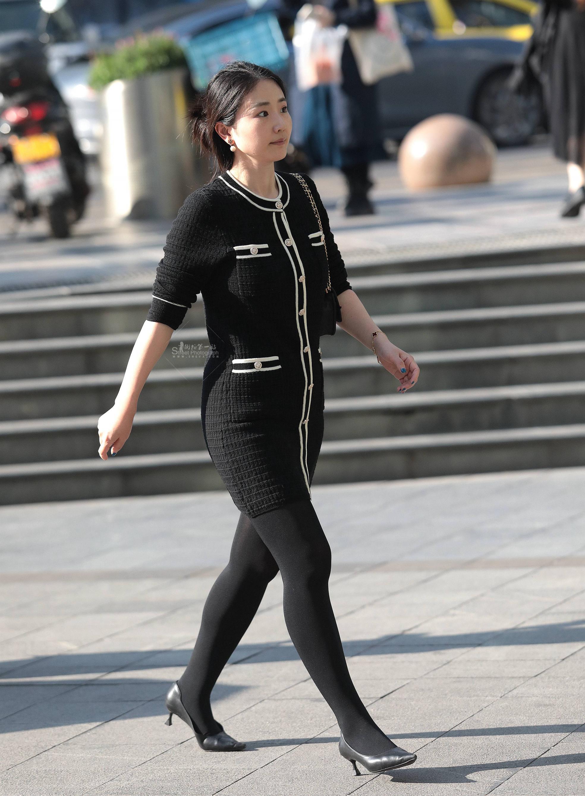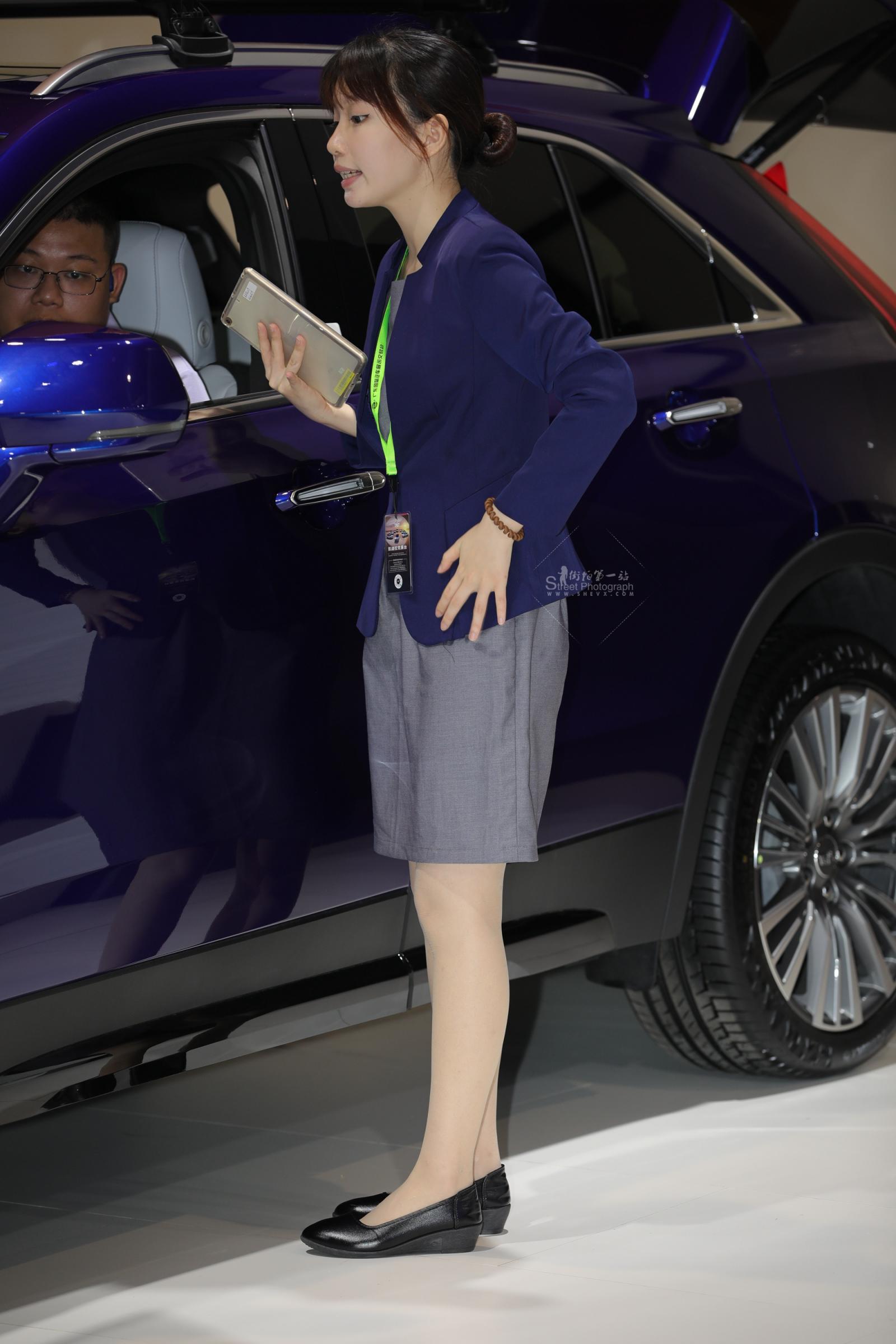 街拍心灵】奥迪车展礼仪肉丝墨绿色街拍高跟哇塞