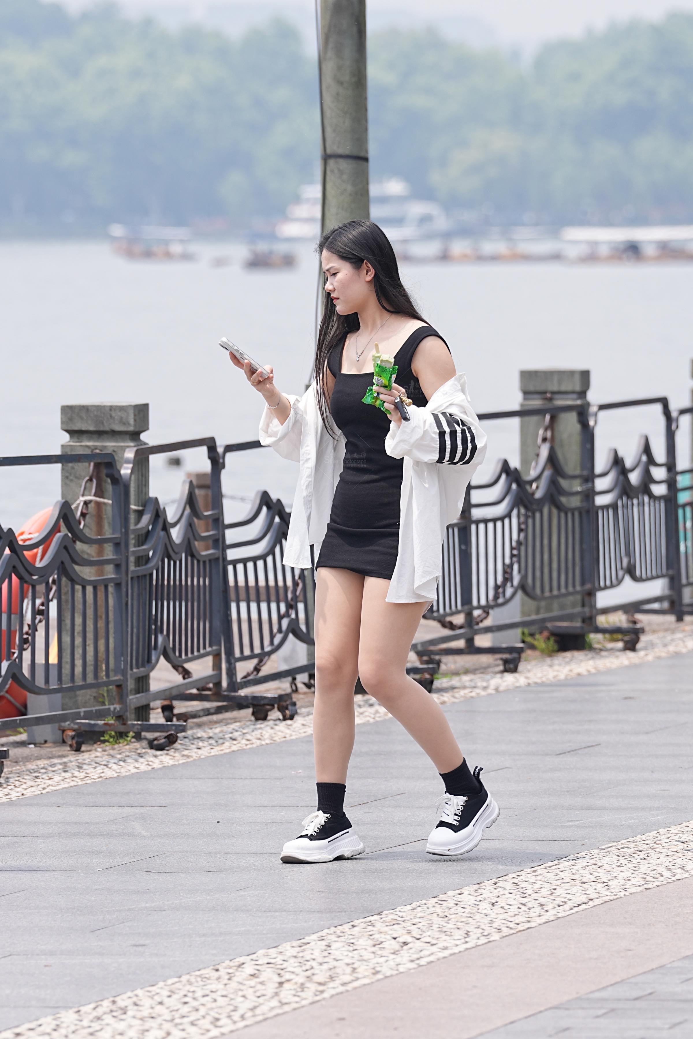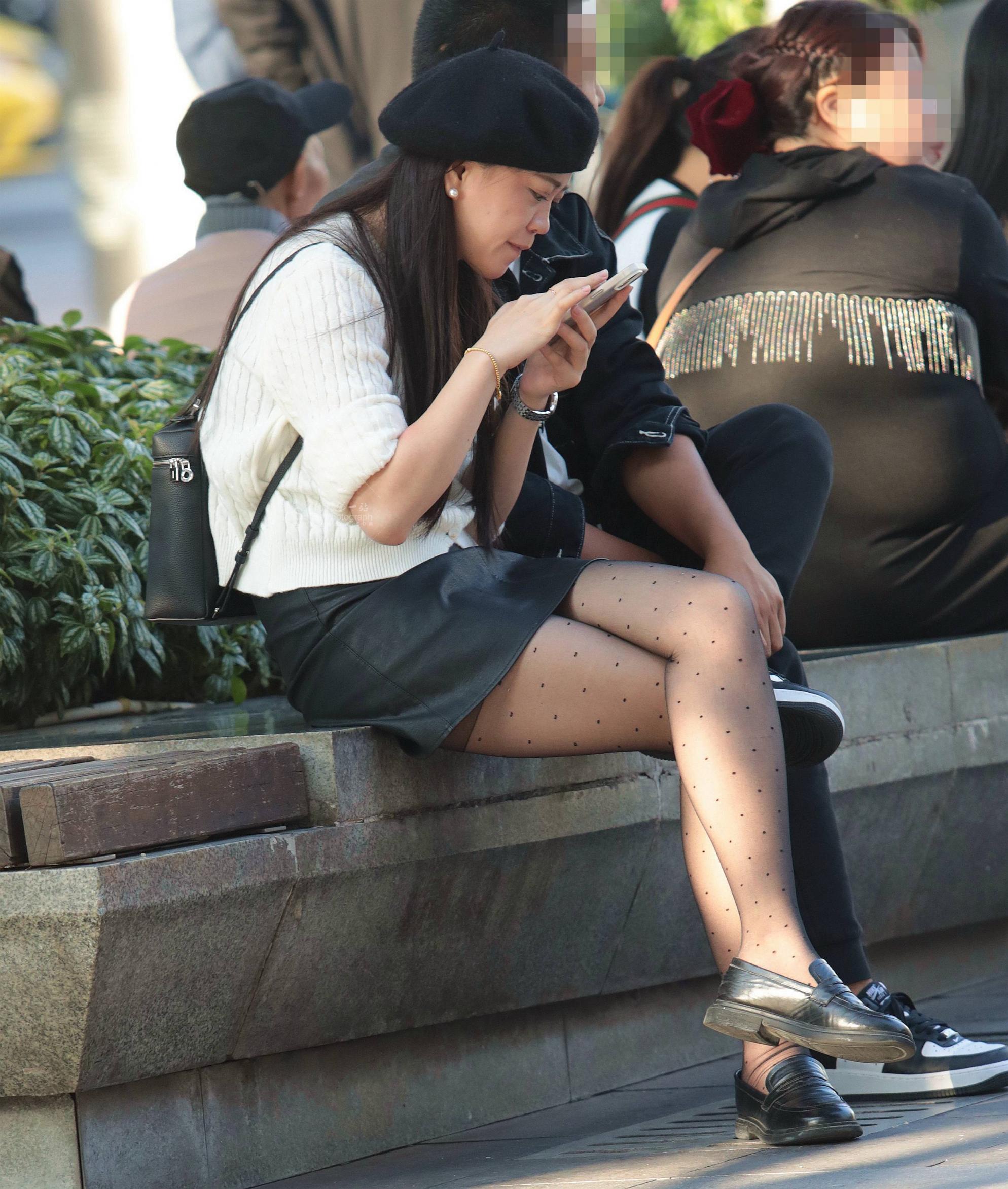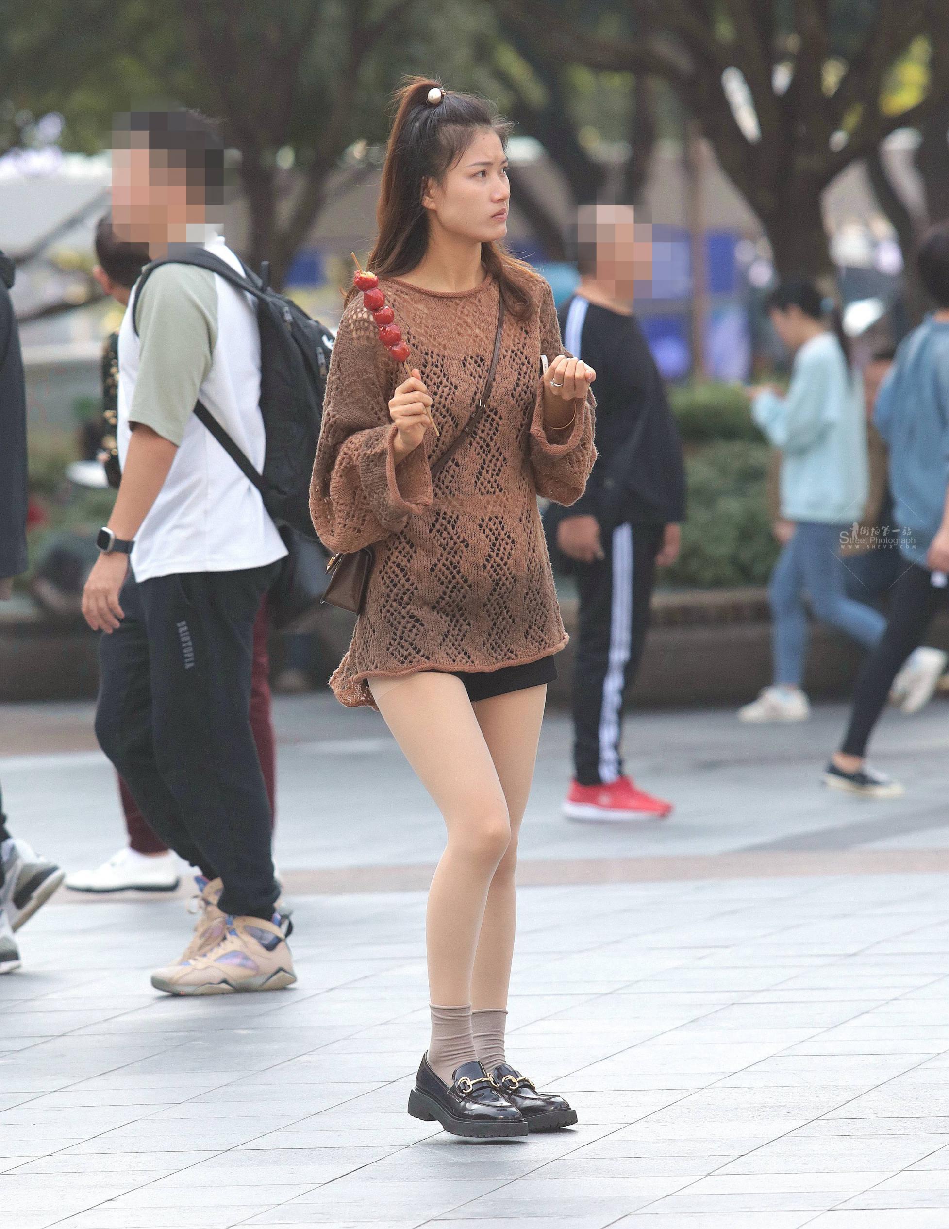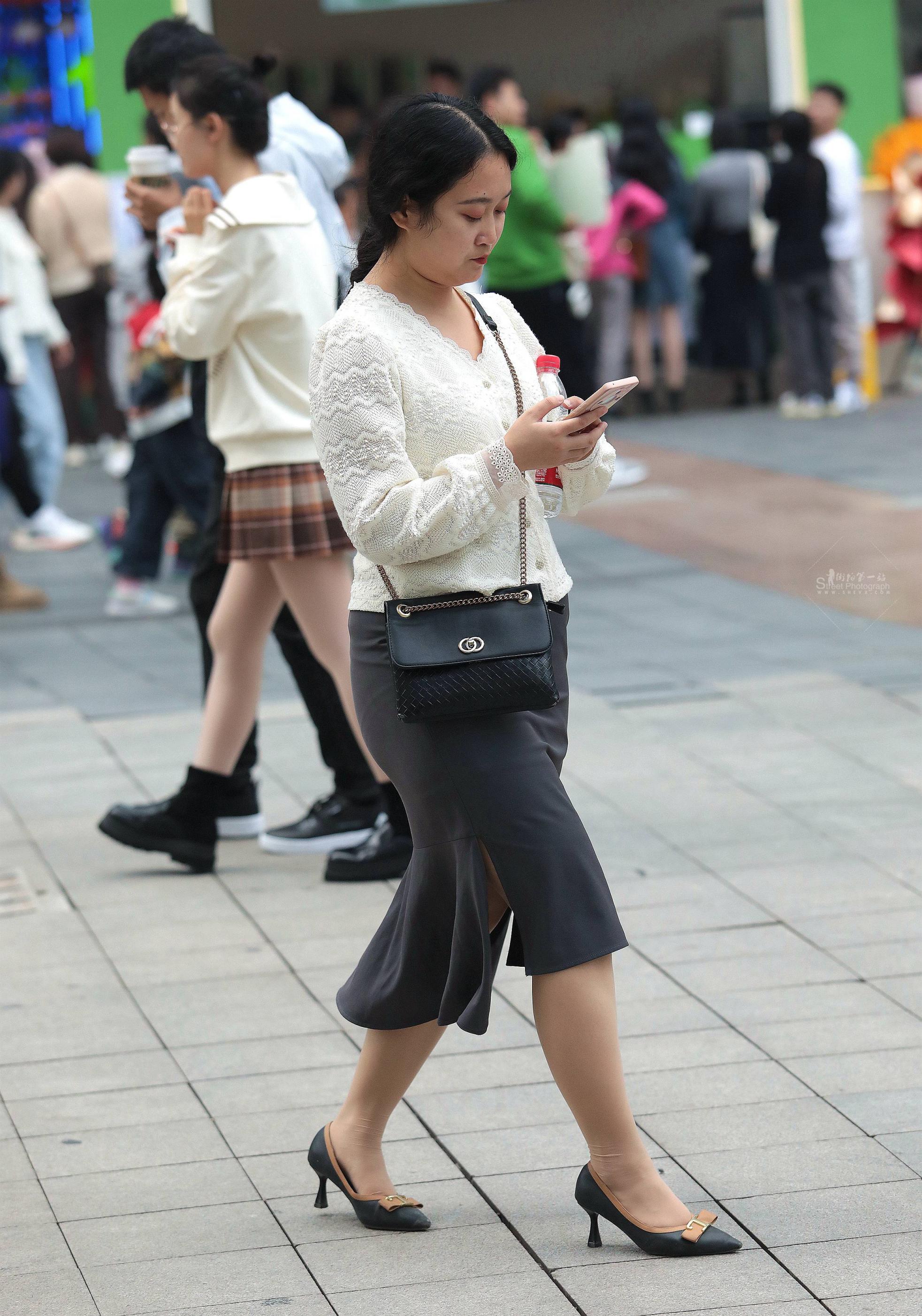 【街拍心灵】奥迪车展礼仪肉丝墨绿色高跟哇塞...