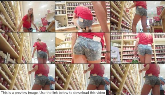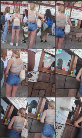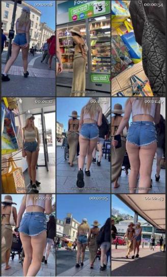 【独家原创】与男友攀谈的女子的超短牛仔裤下的美臀