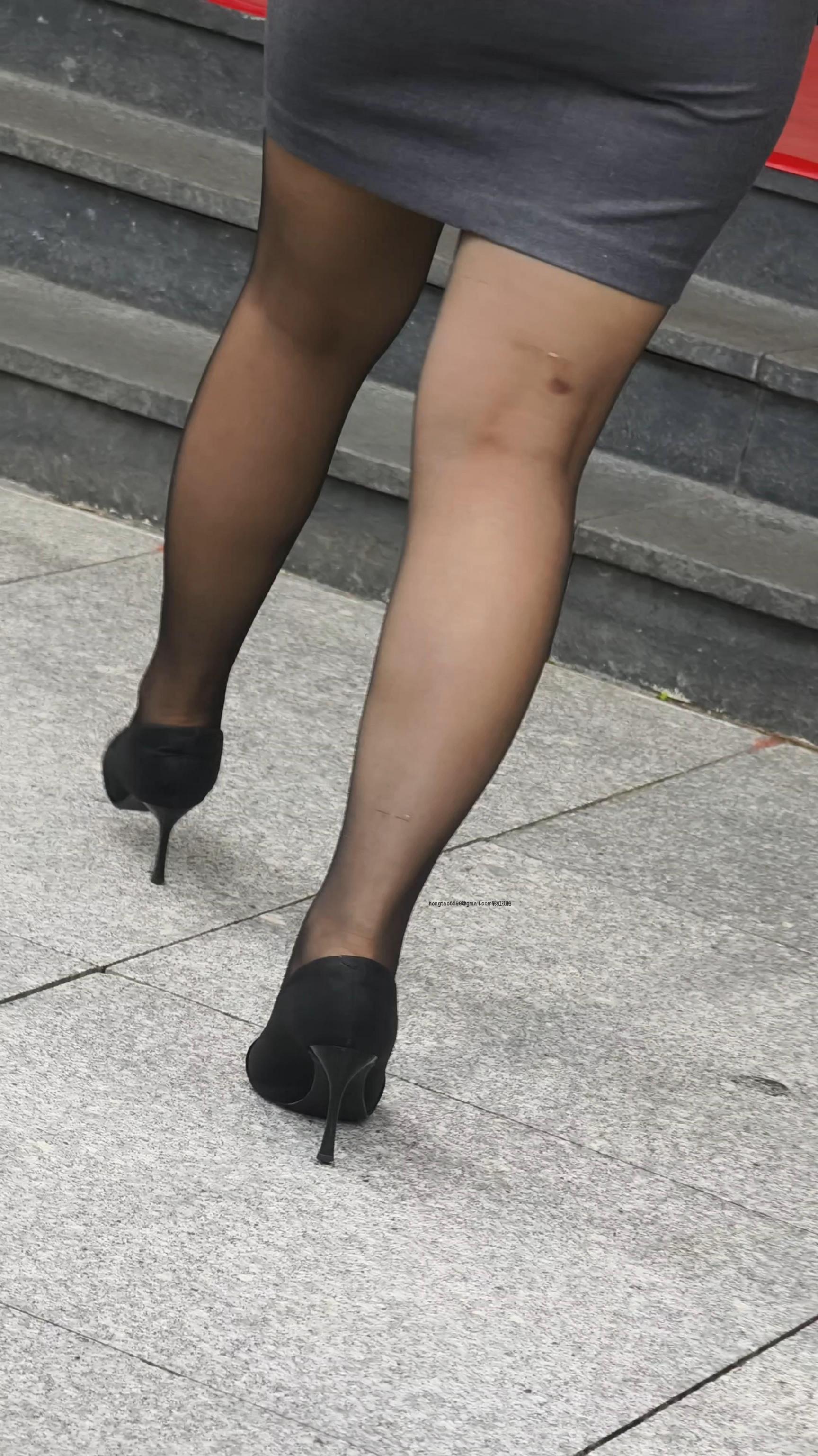 诱惑肉丝高跟街拍少妇