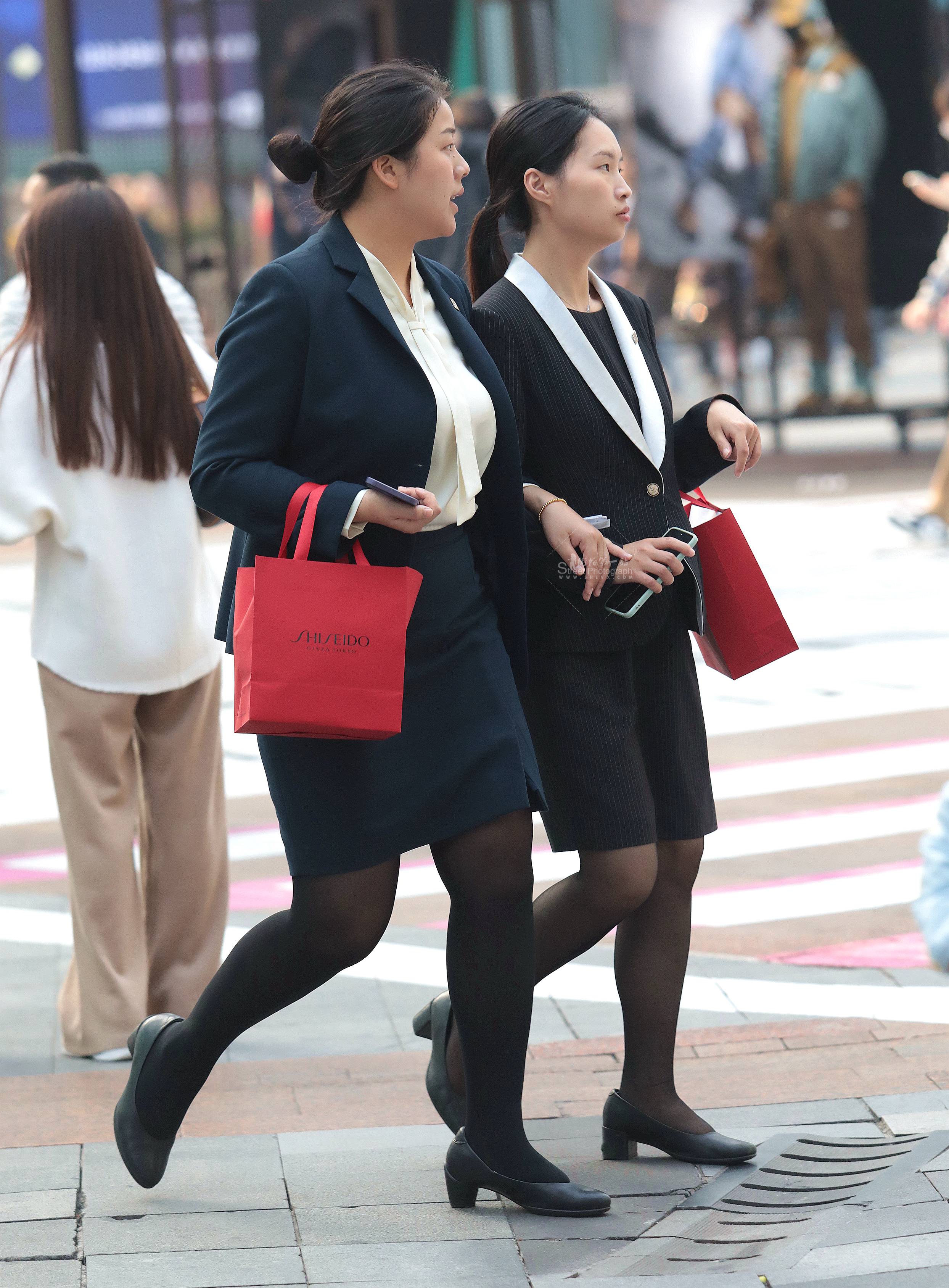 【街拍心灵】奔驰销售顾问黑丝街拍高跟制服