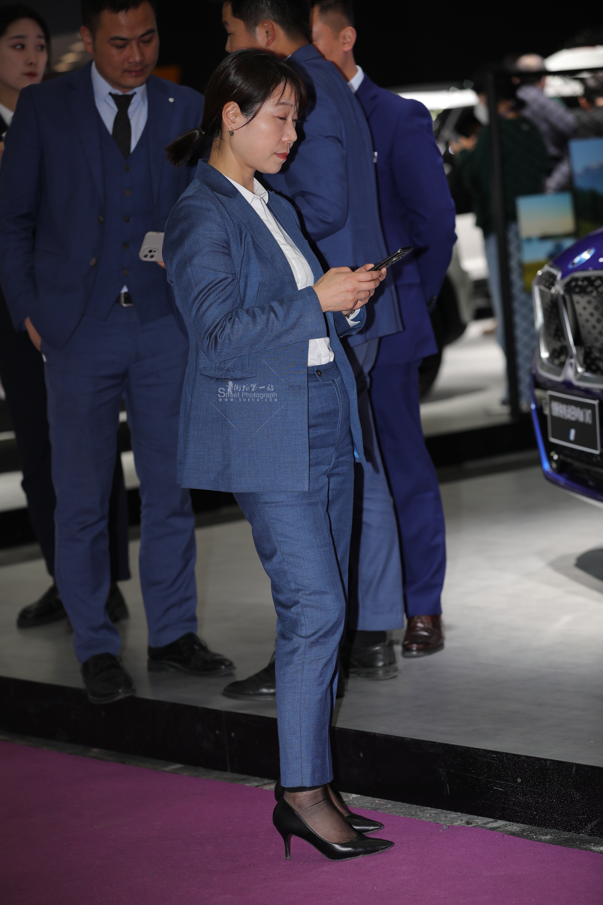 【街拍心灵】车展礼仪街拍超薄肉丝脱鞋在工作