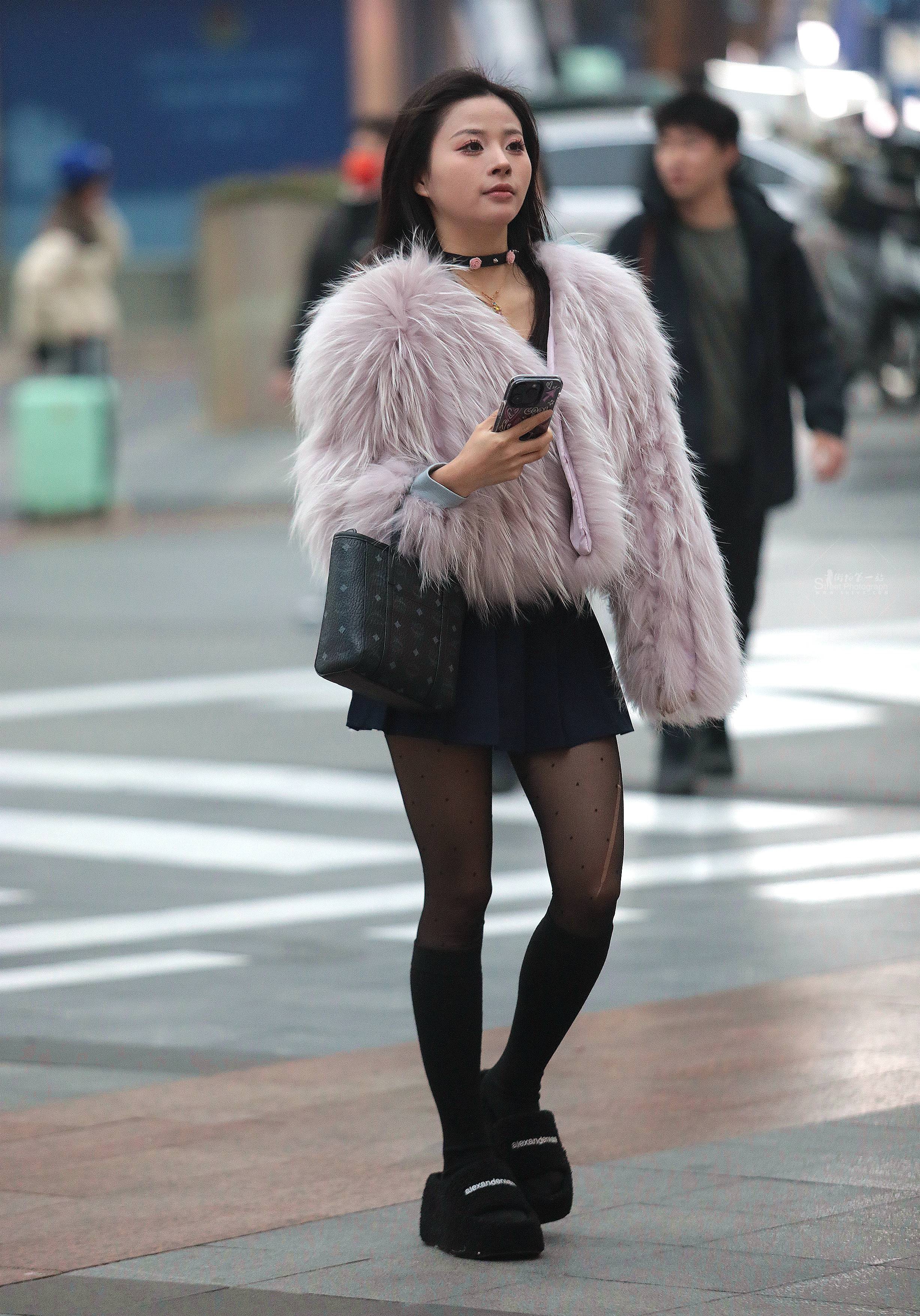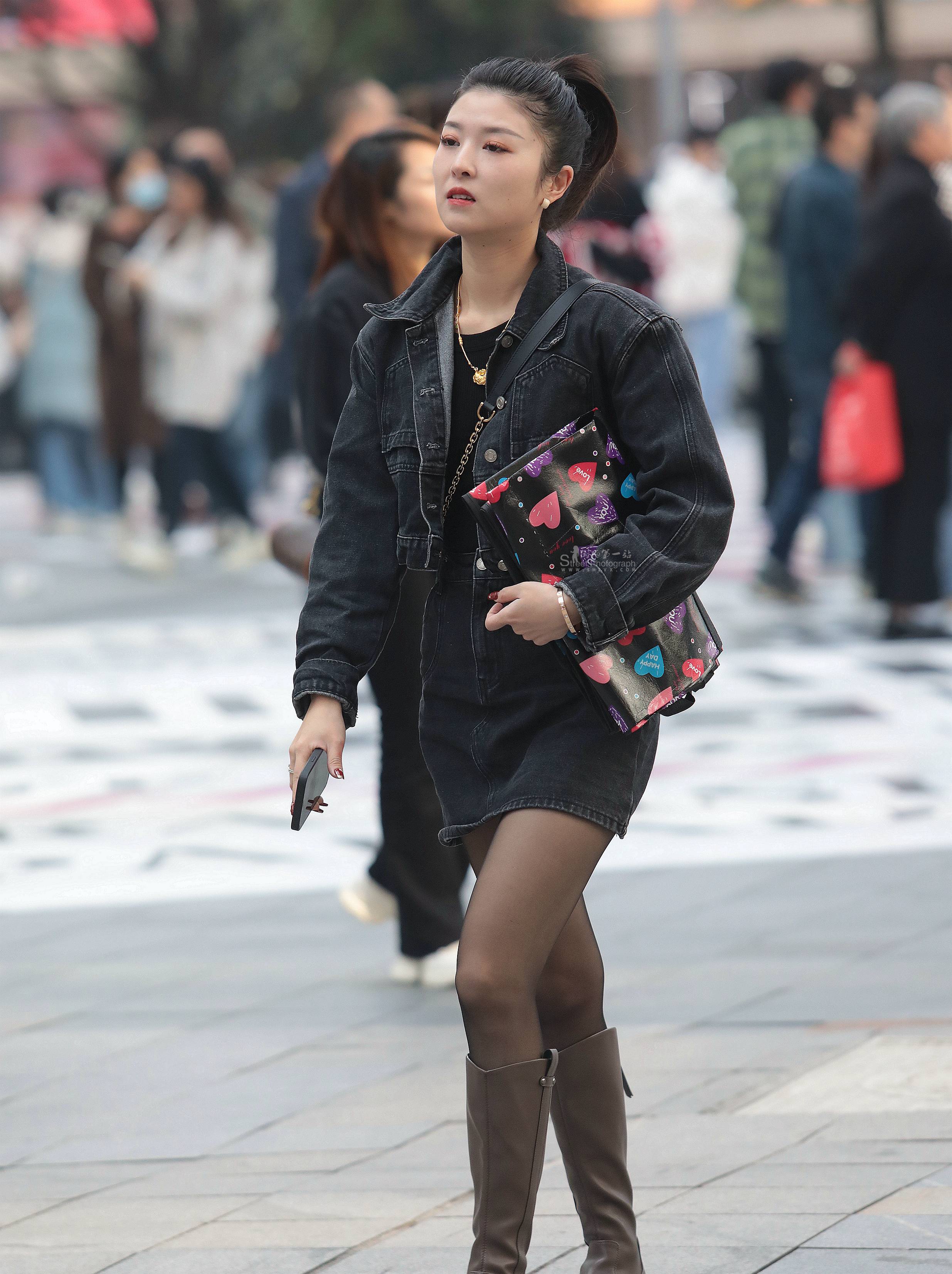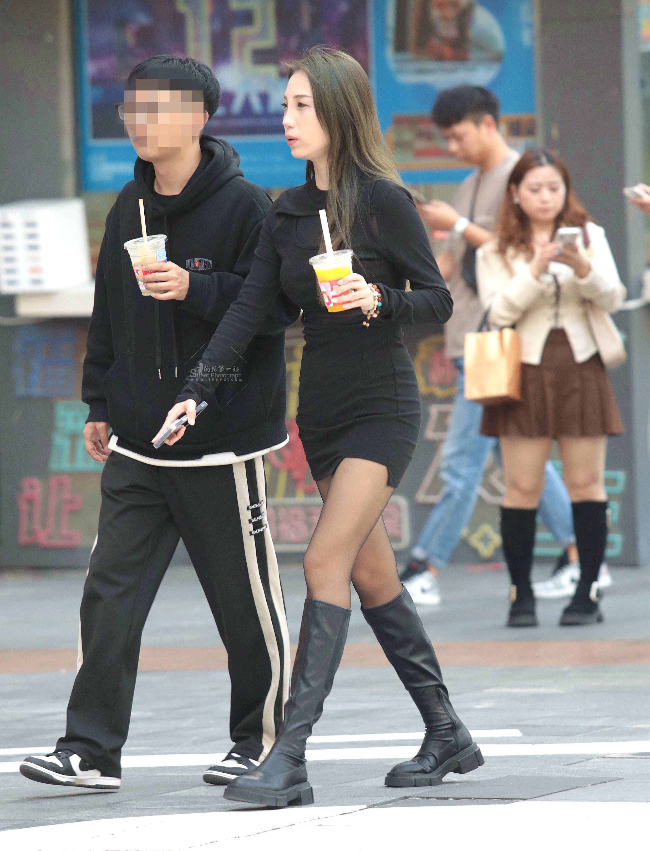 黑丝街拍短裙