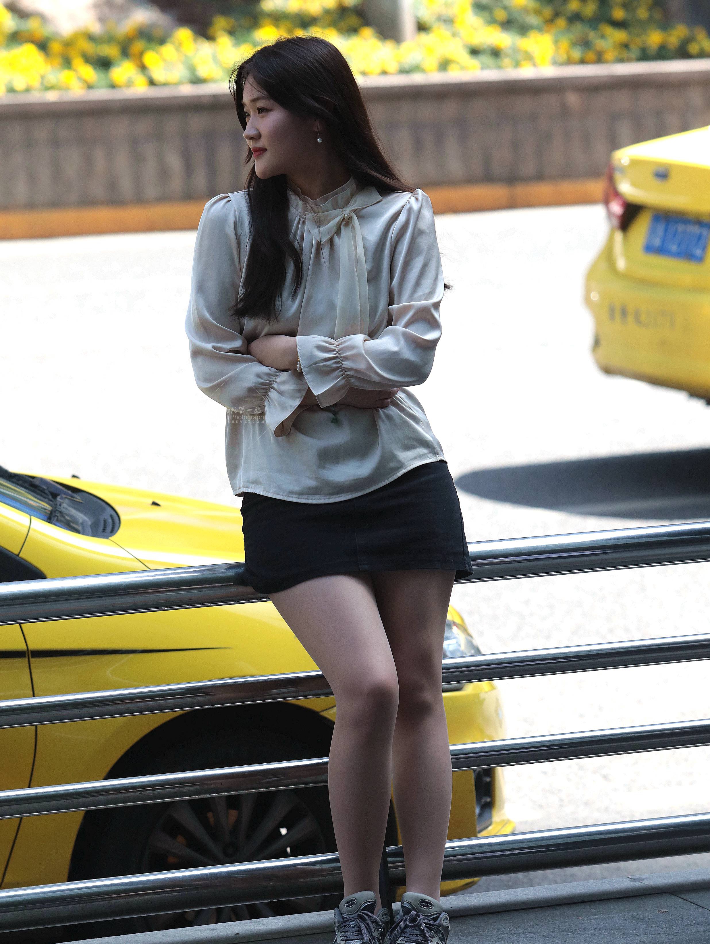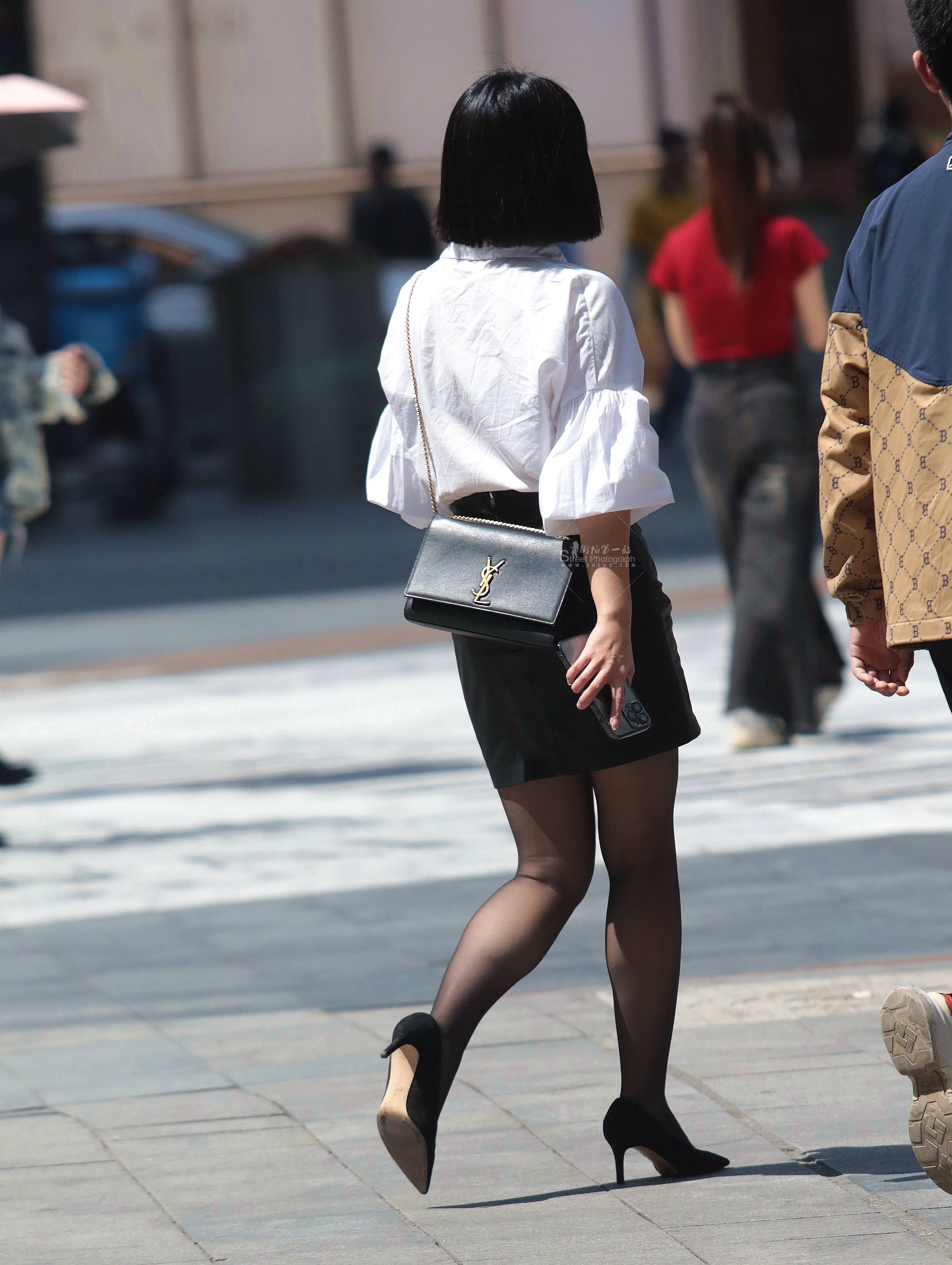 【街拍心灵】汽车销售顾问黑色街拍美腿制服