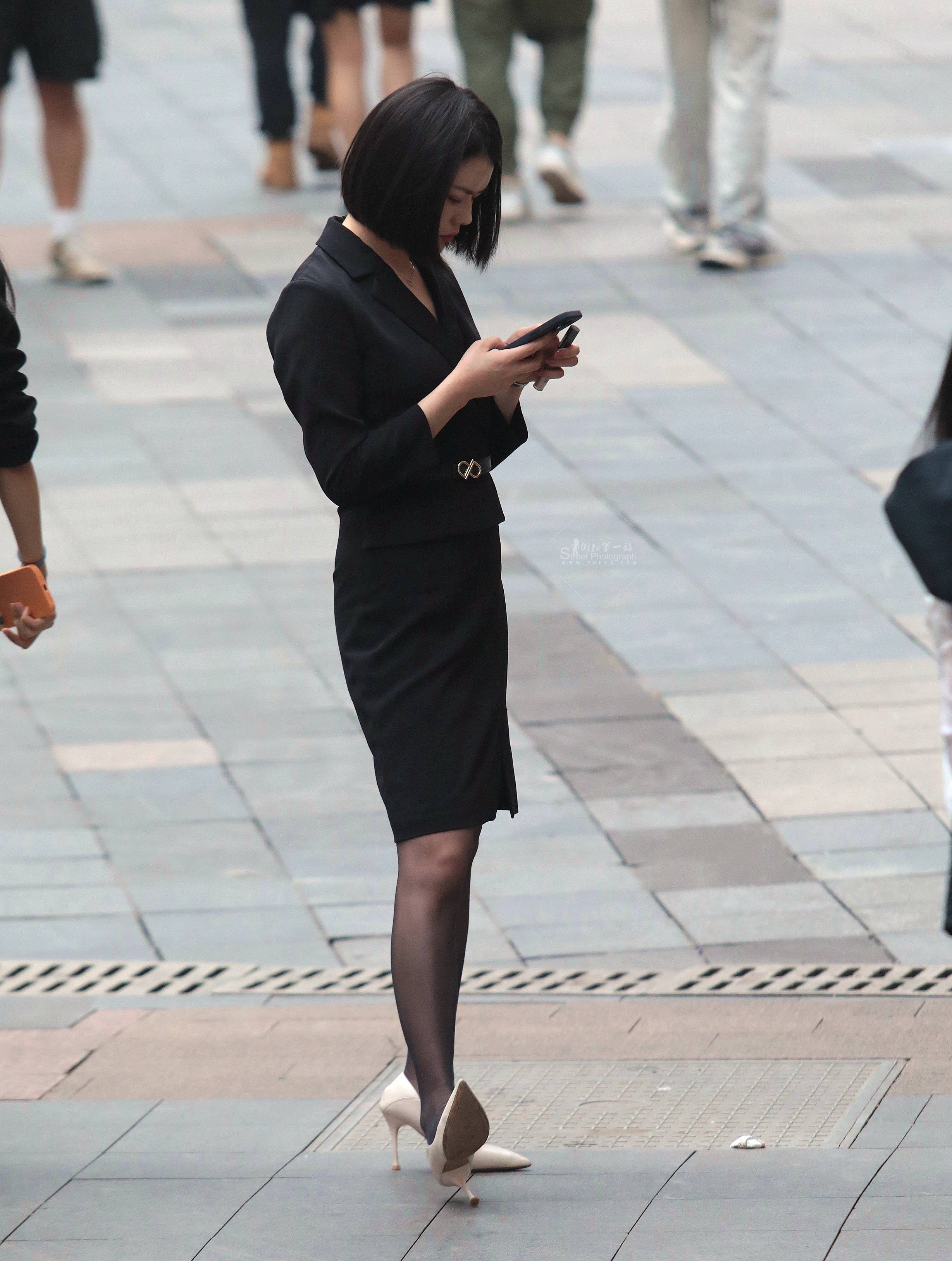 【街拍心灵】酒店经理黑丝高跟街拍制服