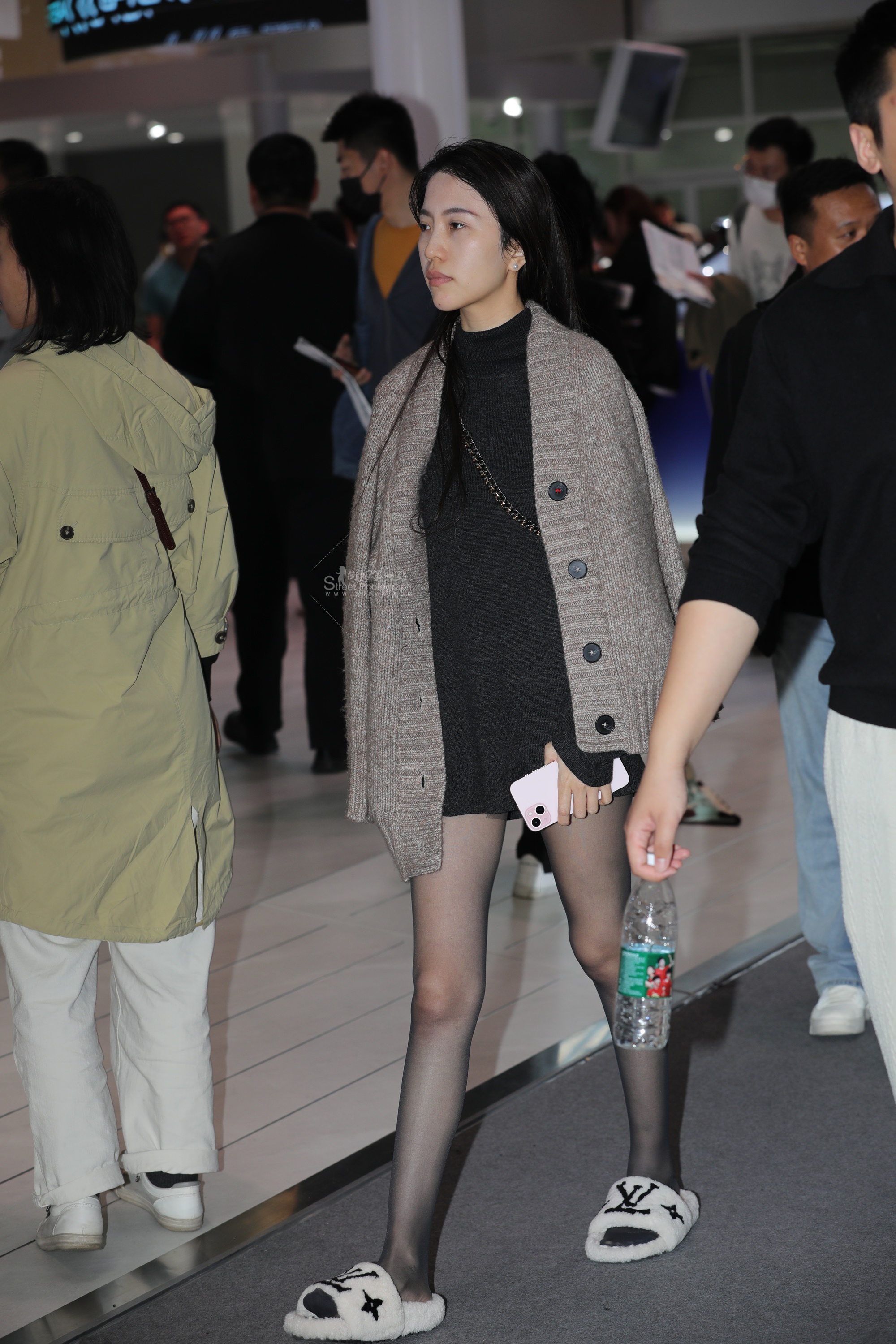 【街拍心灵】大长腿黑丝拖鞋街拍小姐姐