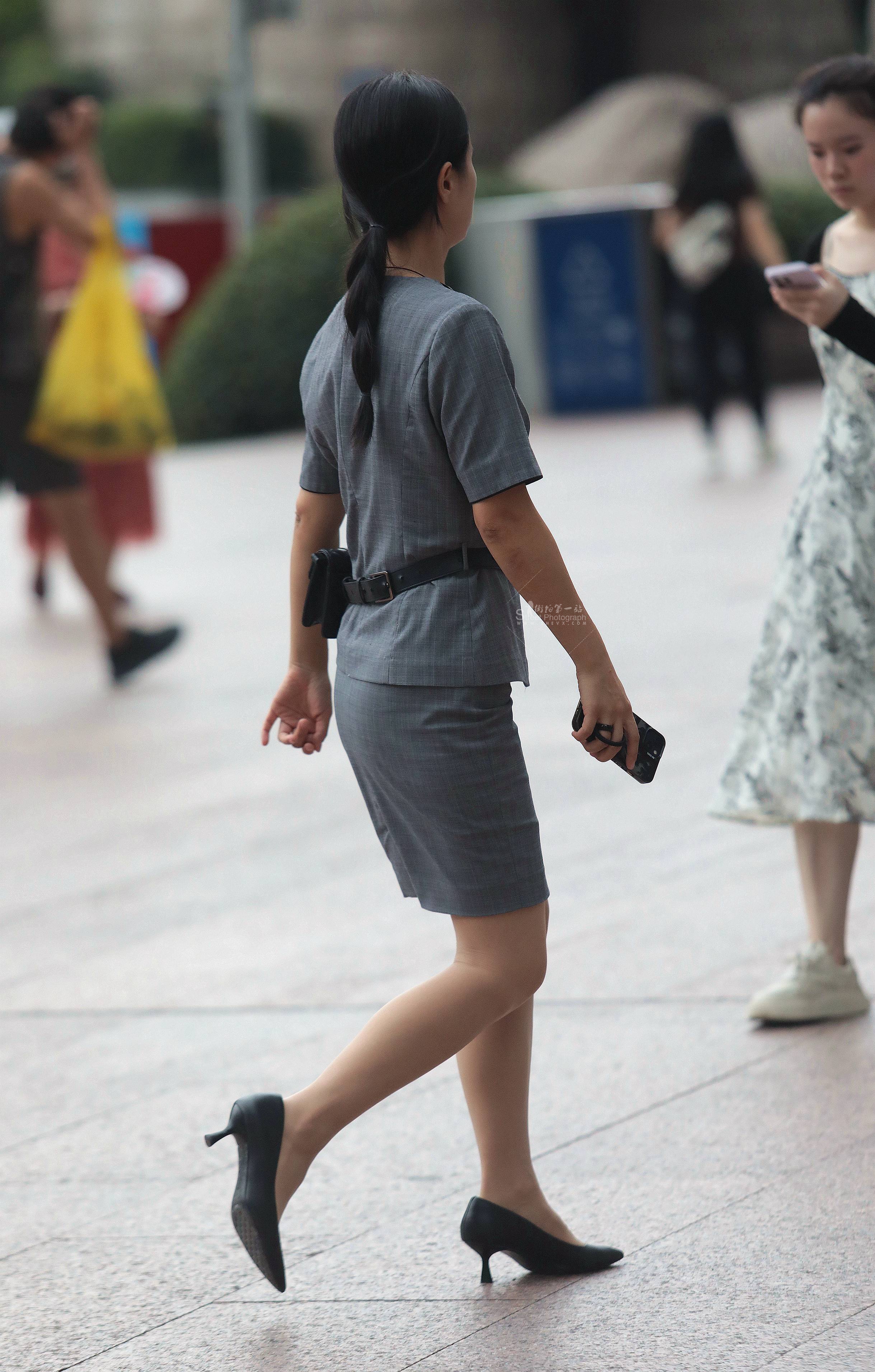 街拍黑丝职业装