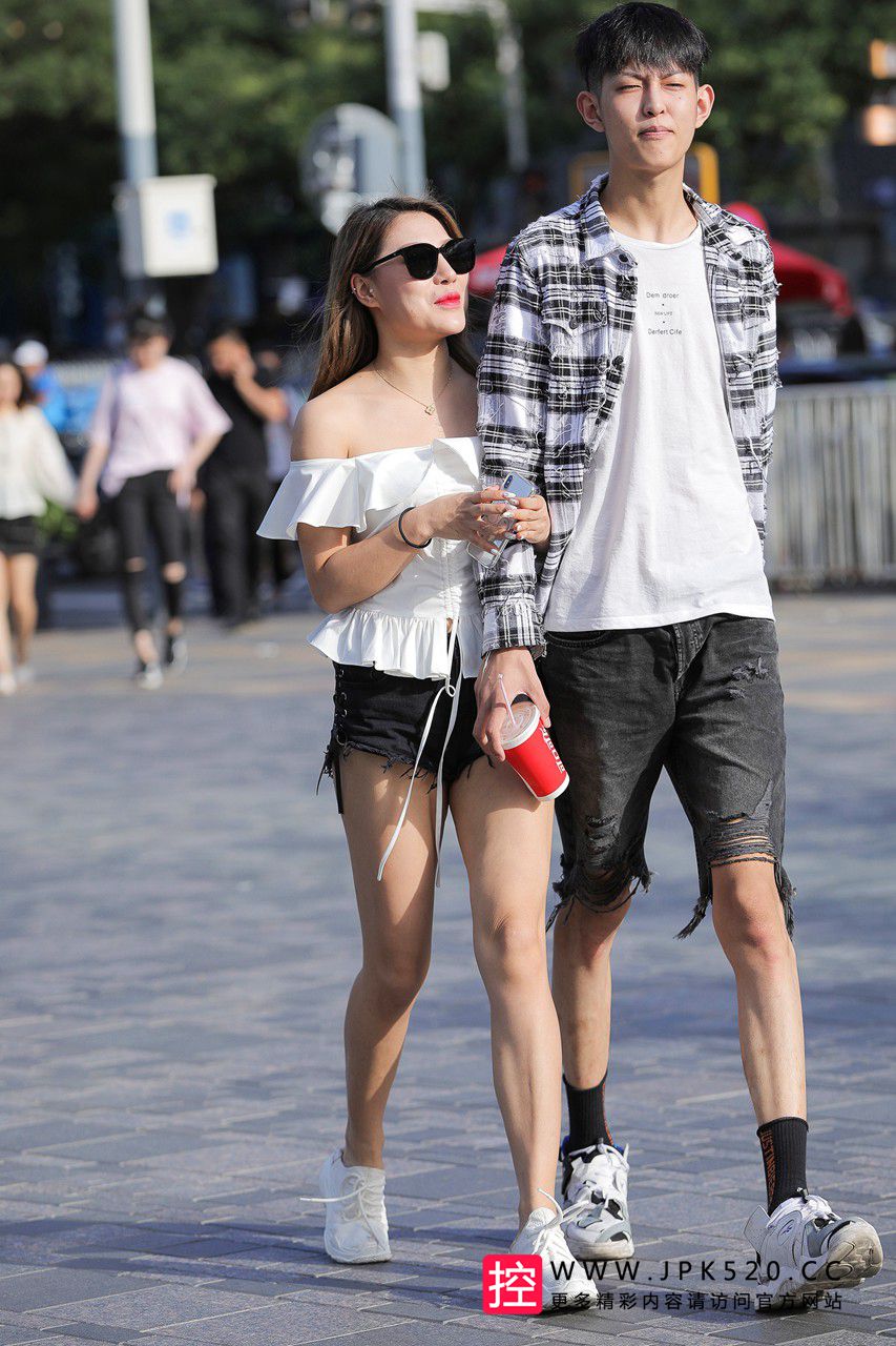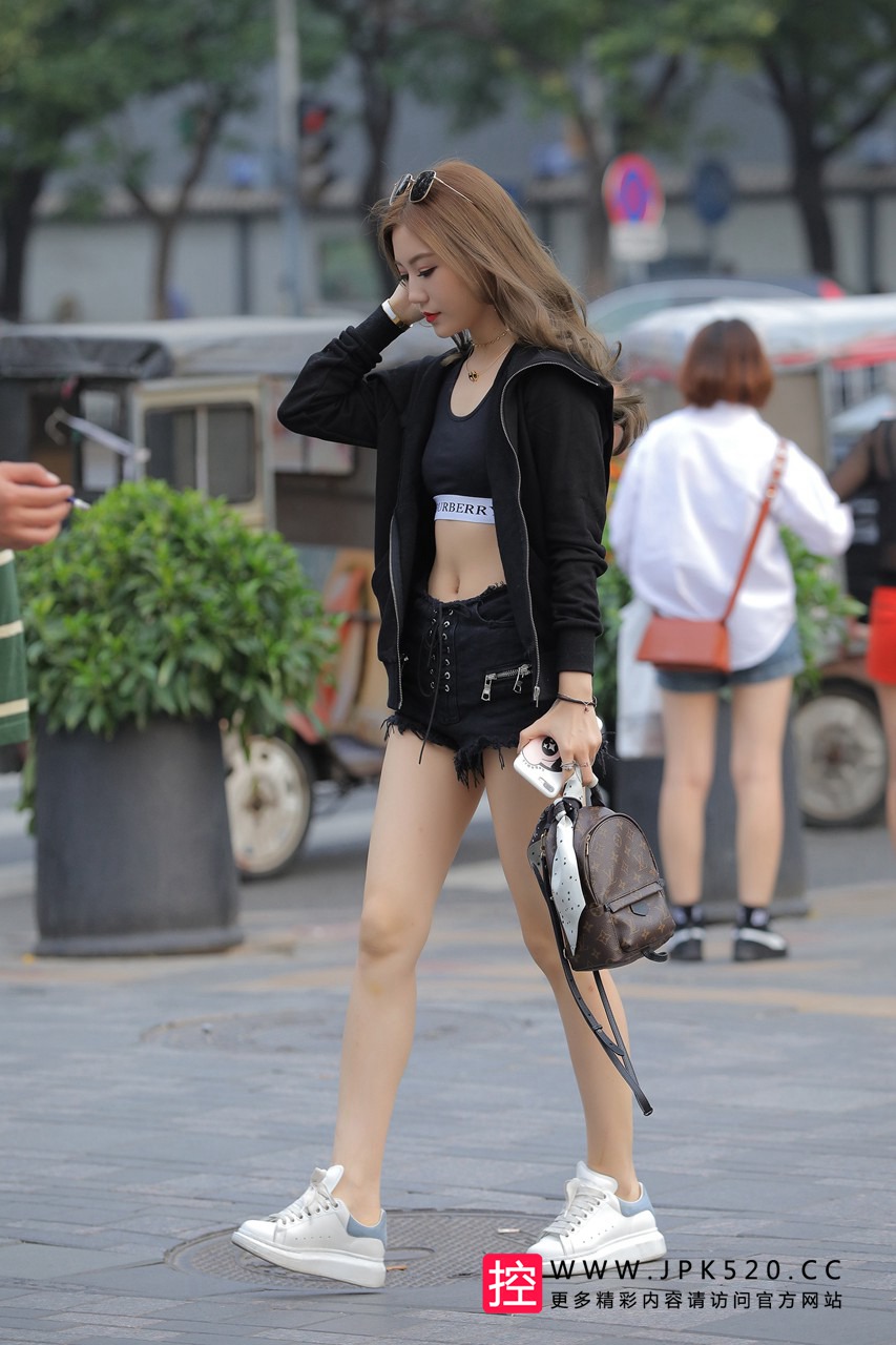 【独家原创】高颜值时尚靓女的牛仔短裙美腿