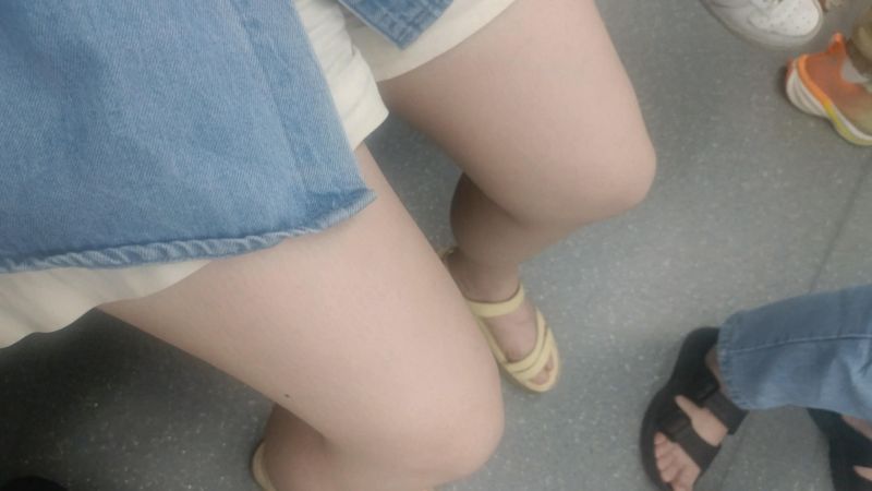 【独家原创】轻碰高颜值裸脚美女的超短裤美臀与细长直美腿