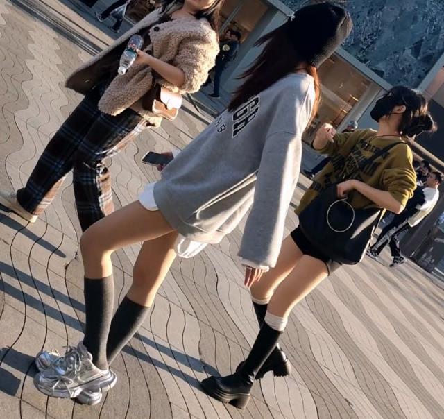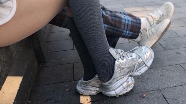 资源简介:高个细长腿逛街时尚美女的灰脚跟与薄丝大腿