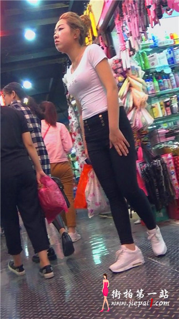 街拍紧身圆臀妹子逛街,很孤独,就一个人!