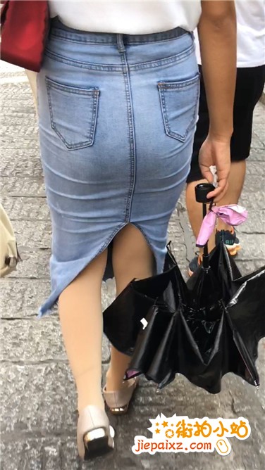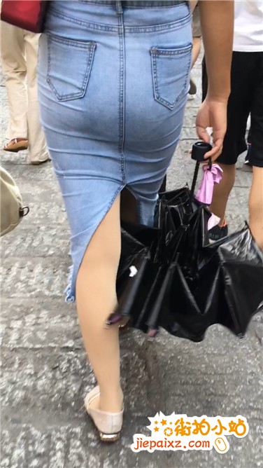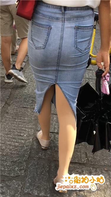 跟拍超紧包臀开叉牛仔裙美女,想蹭蹭