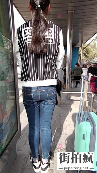 [心花摄大师] 紧身蓝色牛仔裤眼镜小妹在等车[1.05G/MP4]