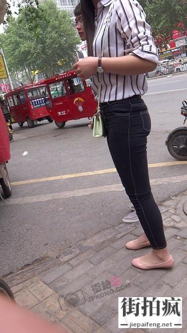 [街拍控独家出品] 丰臀黑色牛仔裤眼镜妹[423M/MP4]