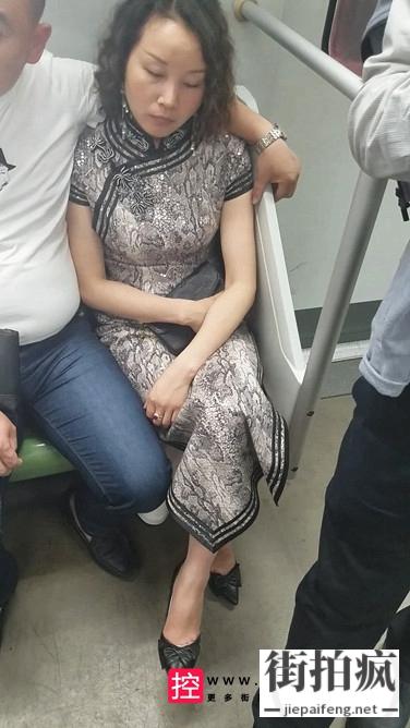 [美腿] 地铁近拍旗袍连衣裙黑色高跟美足[634M/MP4]