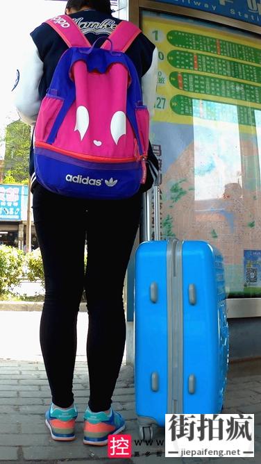 [心花摄大师] 拎着蓝行李箱的紧身黑裤美眉,PP很有弹xing[512M/MP4]