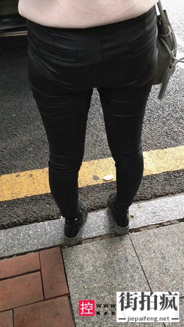[皮裤] 街拍等公交车的黑色皮裤性感饱满翘臀美眉[235M/MOV]
