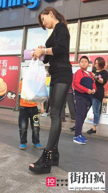 [皮裤] 超市外面刚购物完的皮裤年轻妈妈[155M/MOV]
