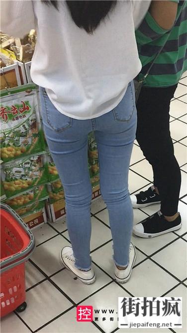 [牛仔裤] 超市超美的淡蓝色牛仔裤长腿帆布鞋美眉[190M/MOV]