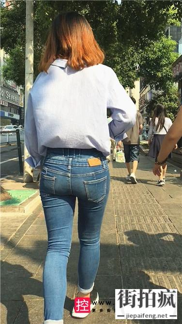 [牛仔裤] 蓝色紧身牛仔裤圆润翘臀美眉[163M/MOV]