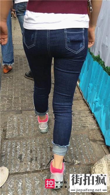 [牛仔裤] 街拍蓝色紧身牛仔裤美眉[293M/MOV]