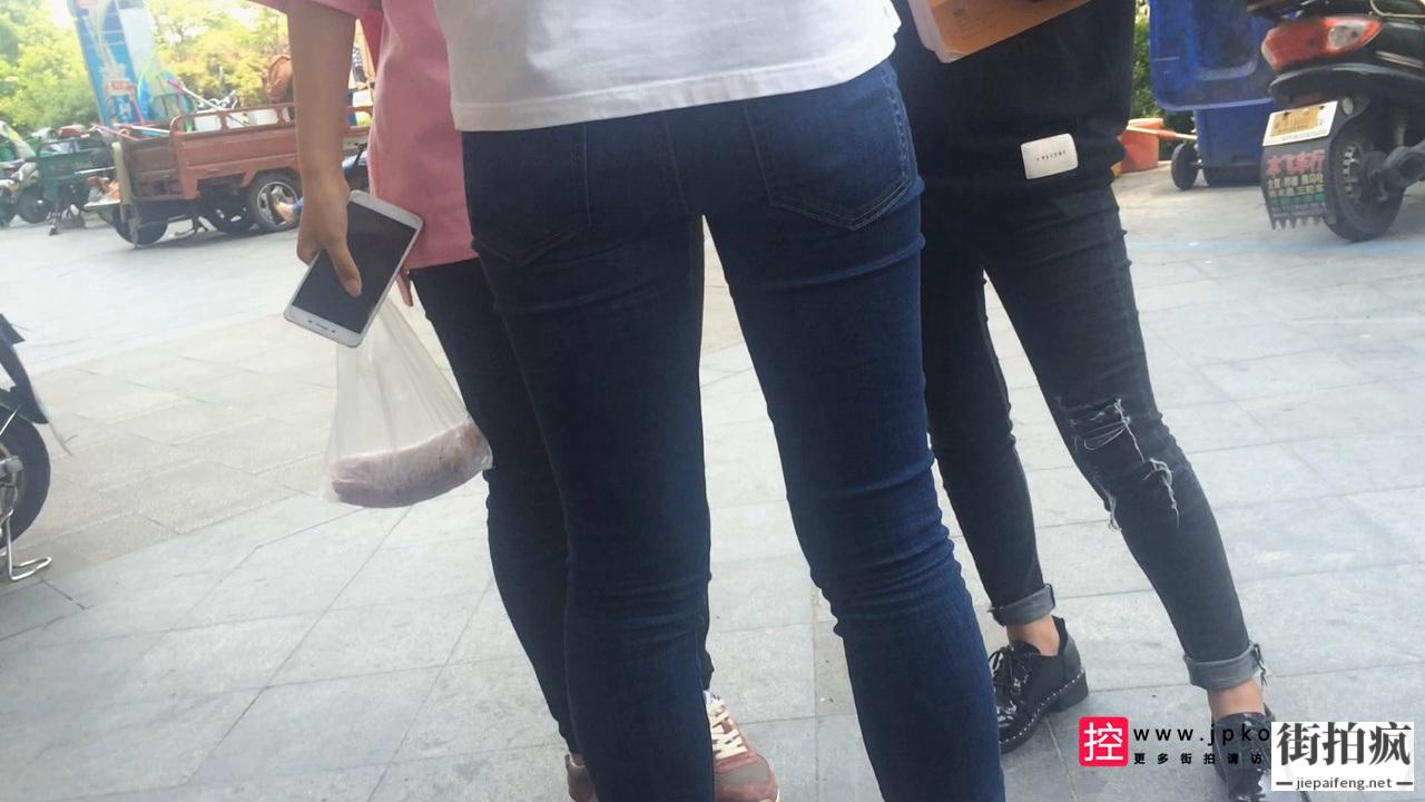 [牛仔裤] 街拍蓝色牛仔裤翘臀学妹[211M/MOV]