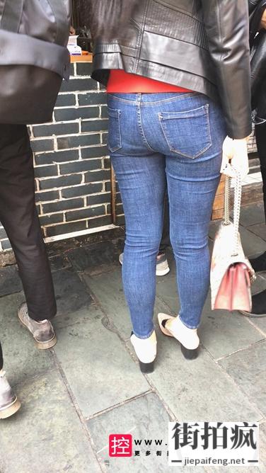 [牛仔裤] 街拍蓝色紧身牛仔裤翘臀美眉[353M/MOV]
