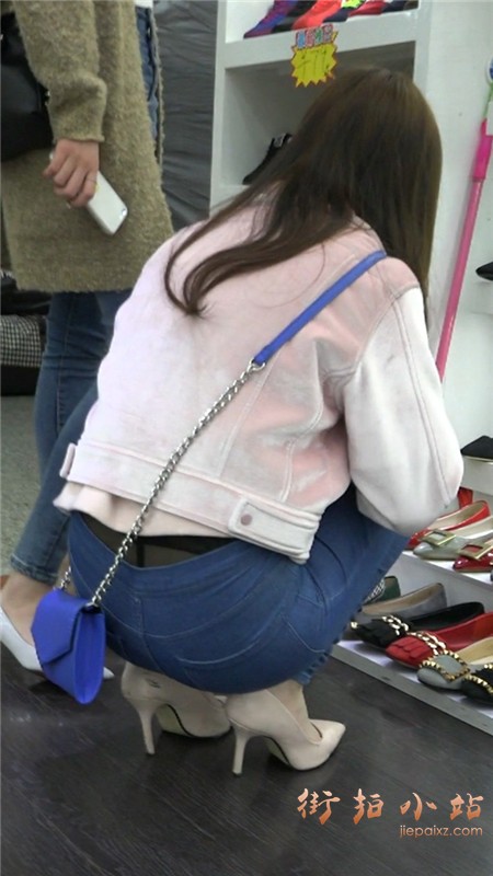 极品紧身蓝牛粉色高跟鞋女神姐姐逛鞋店