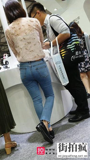 [牛仔裤] 4K-碎花衬衫紧身圆润翘臀牛仔裤美女OL [1.75G/MP4]