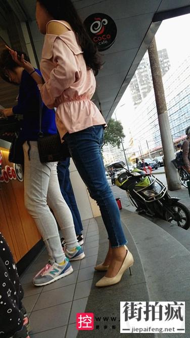 [牛仔裤] 4K-排队买饮品的紧身牛仔裤高跟美眉[642M/MP4]
