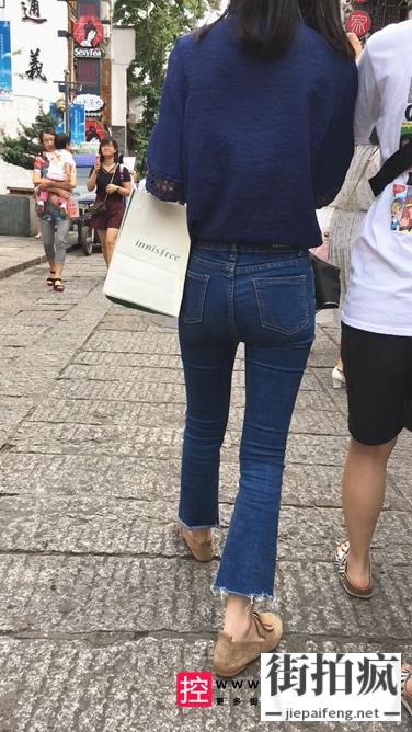 [牛仔裤] 街拍蓝色紧身牛仔裤翘臀美眉[433M/MOV]