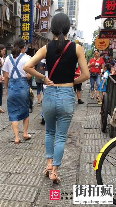 [牛仔裤] 蓝色紧身牛仔裤美眉逛古街[329M/MOV]