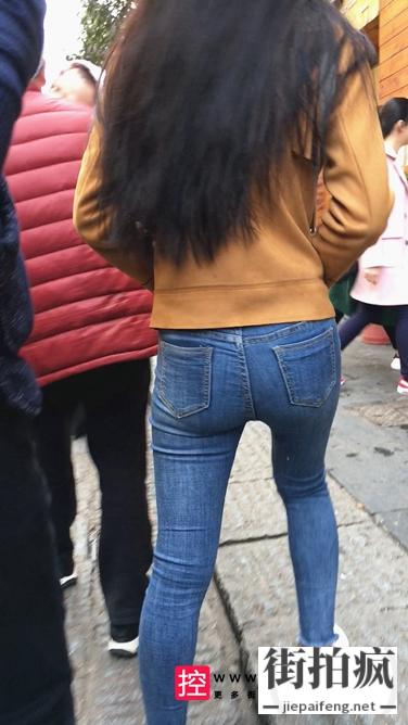 [牛仔裤] 街拍紧身牛仔裤圆润翘臀小妹[550M/MOV]