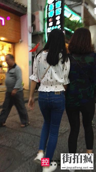 [牛仔裤] 街拍蓝色紧身牛仔裤圆润翘臀美眉[229M/MOV]