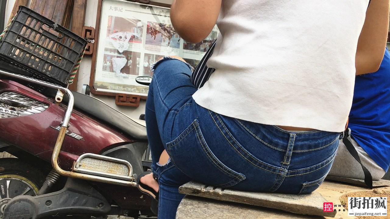 [牛仔裤] 蓝色紧身牛仔裤极品饱满圆润大PP美眉[224M/MOV]