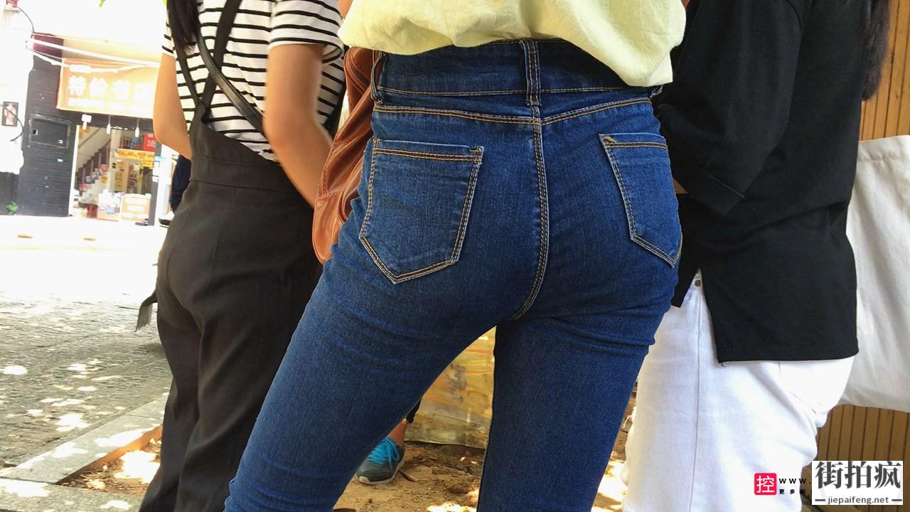 [牛仔裤] 街拍等车的蓝色紧身牛仔裤饱满圆润翘臀美眉[298M/MOV]