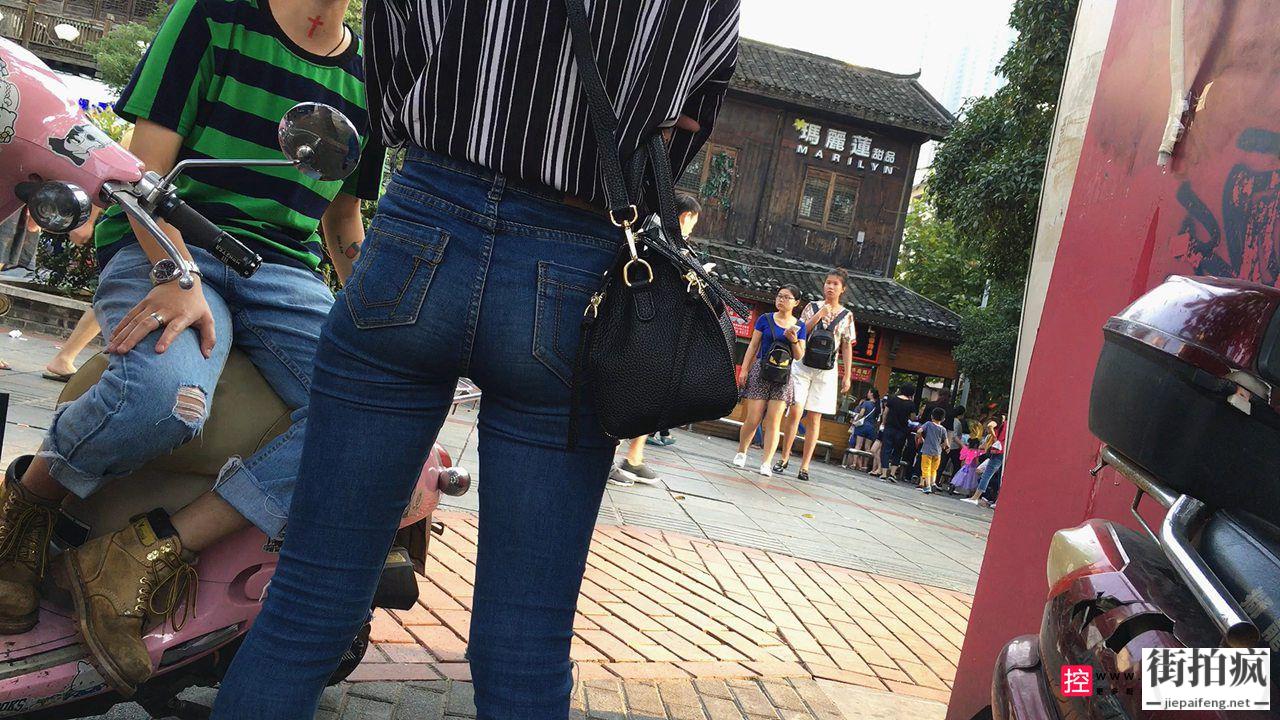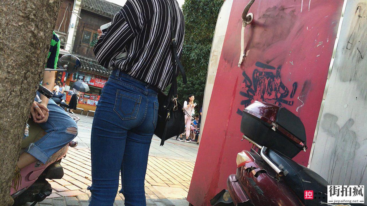 [牛仔裤] 街拍蓝色紧绷牛仔裤墨镜极品圆润翘臀美眉[424M/MOV]