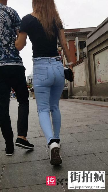 [牛仔裤] 街拍蓝色紧身牛仔裤长发极品饱满圆臀美眉[339M/MP4]