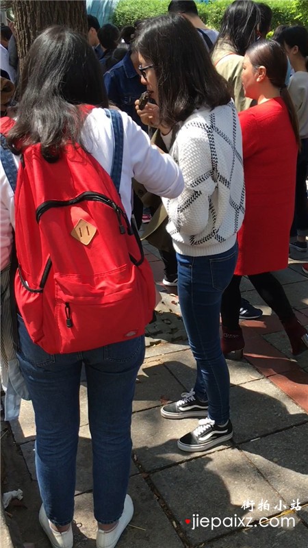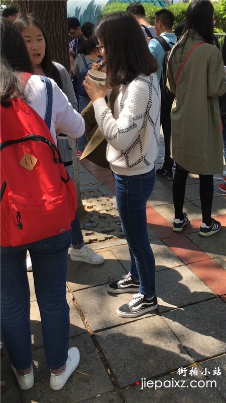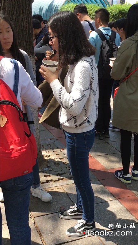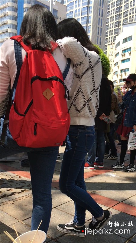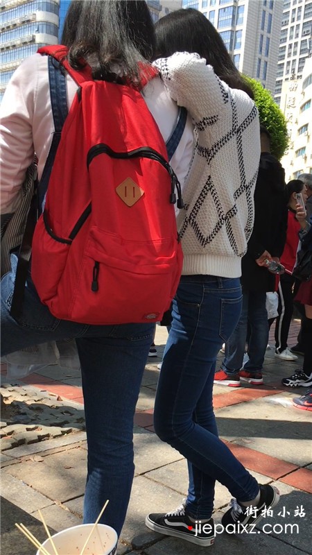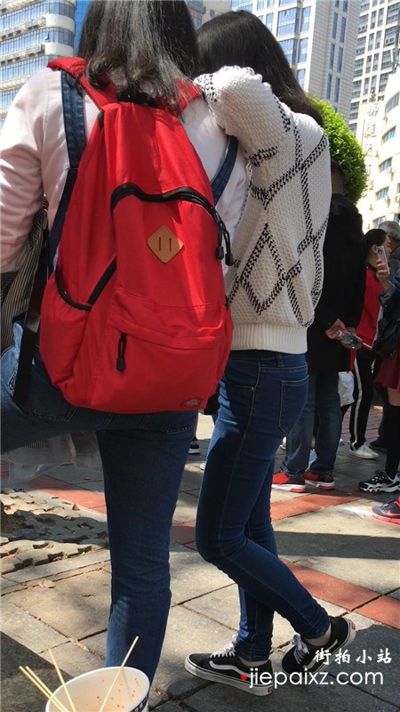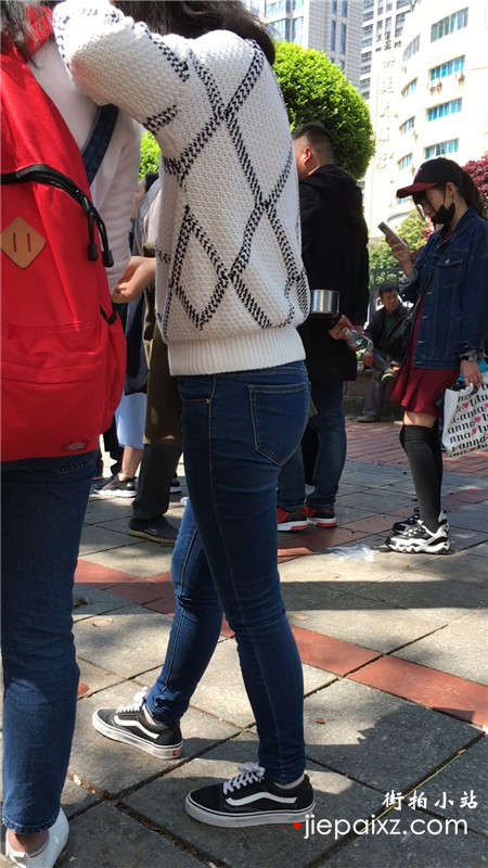 街拍青春气息紧身蓝色牛仔裤美眉