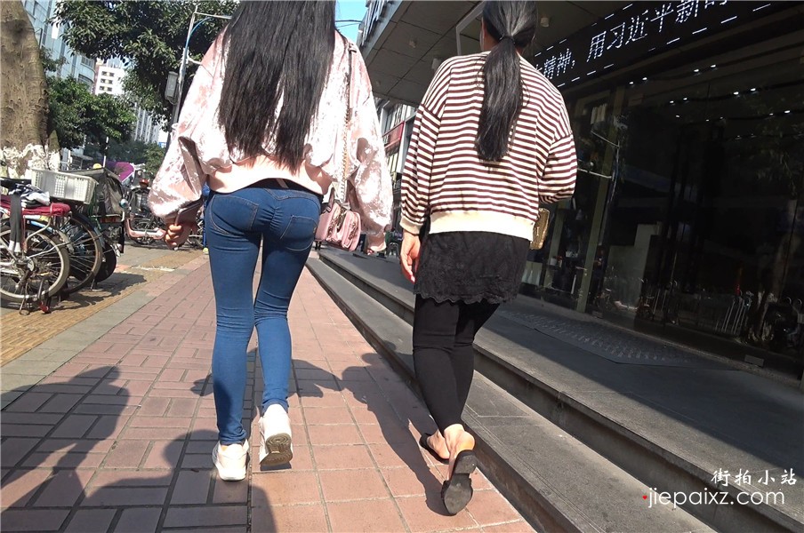 4k视频,街拍圆润紧身美臀牛仔裤美眉。