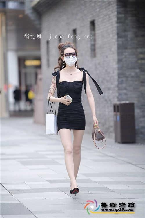 [魔 Buy视频] 街拍黑色紧身连衣包臀超短裙美腿丝袜高跟美女[MP4/3.22G] 3