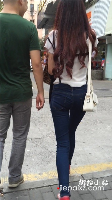 街拍超紧蓝色牛仔裤大长腿女神姐姐