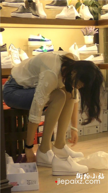 鞋店试鞋的漂亮美少妇,似乎有点纠结。