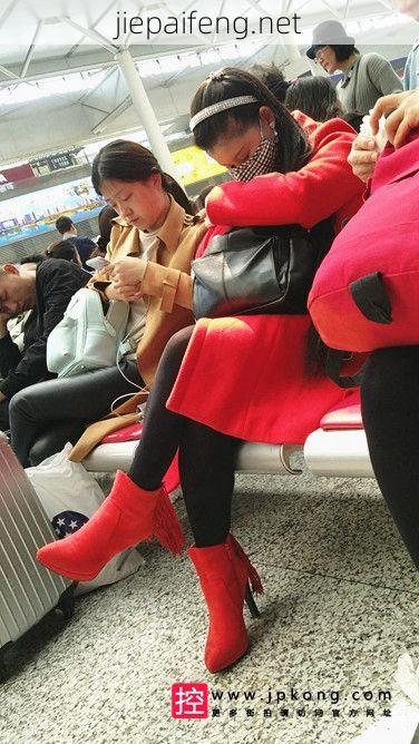 [思足] 4K-街拍黑丝红色大衣雪地靴美妇[808M/MP4]