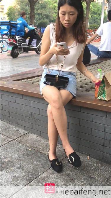[美退] 坐石板上打电话的牛仔短裙美眉[335M/MOV]