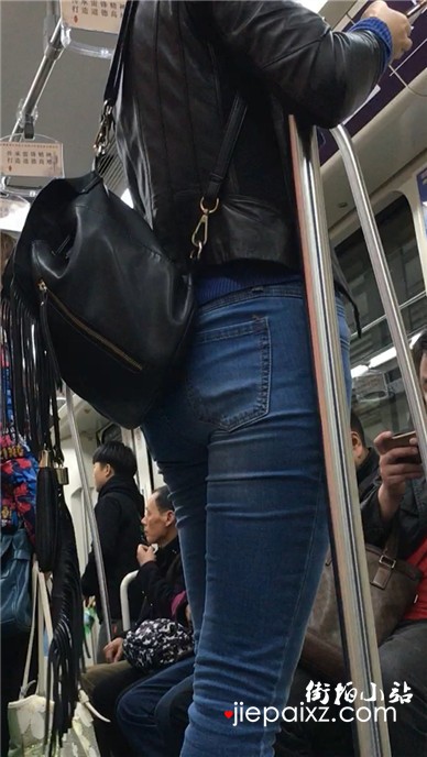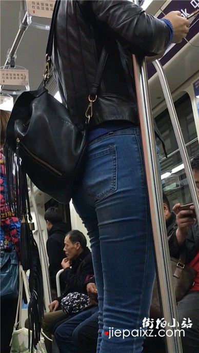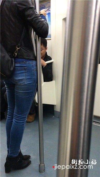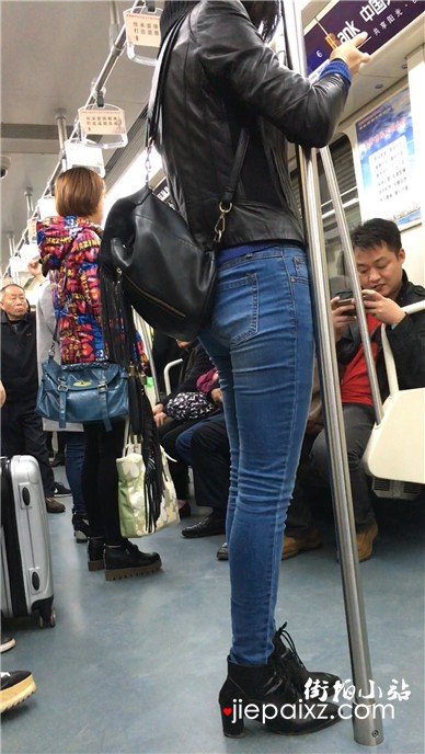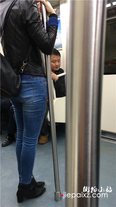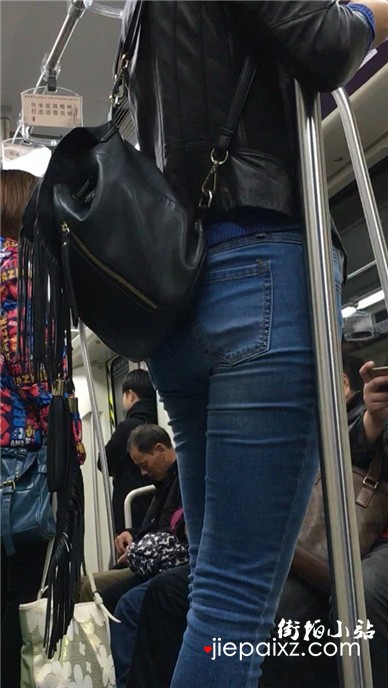 地铁拍摄超紧身蓝牛修长直腿美女