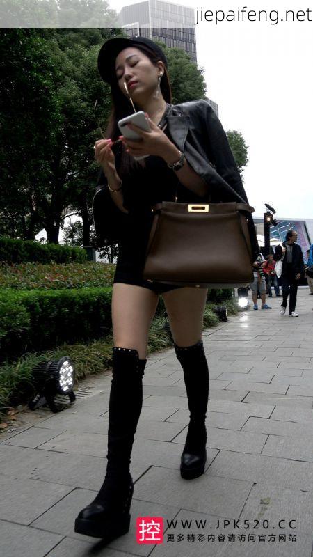 [热裤短裤] 4K-性感黑短裤长腿长靴街拍美女DJ548[2.18G]
