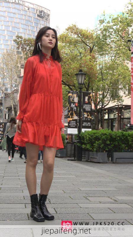 [短裙] 4K-红色连衣裙长腿街拍高跟皮靴美女摆拍DJ375[1.14G]